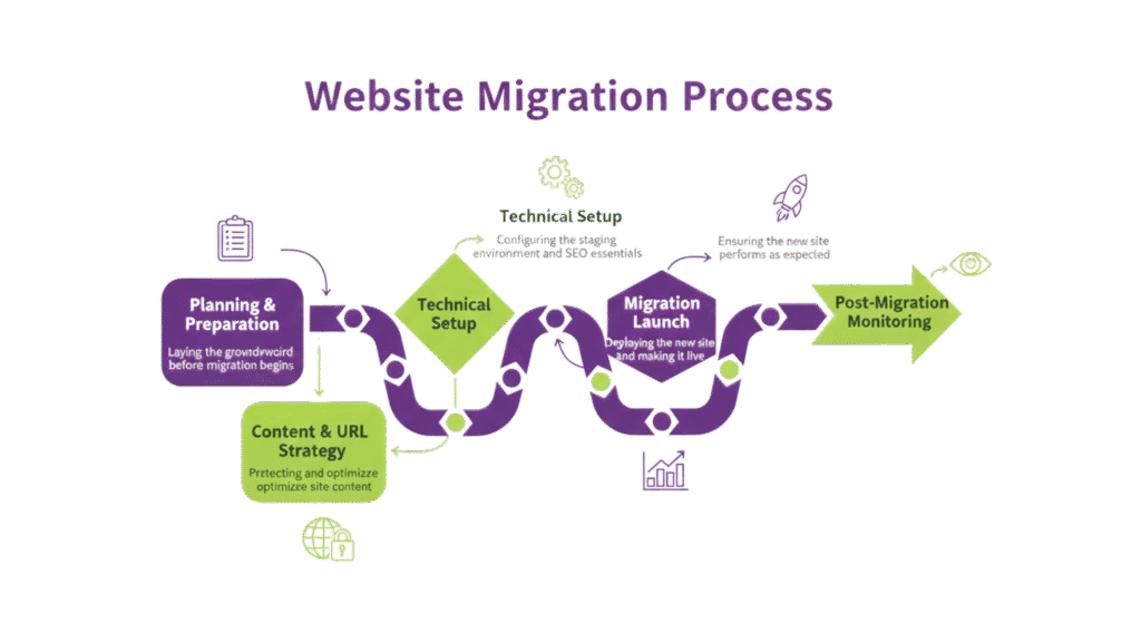 Good planning is your best defense against traffic drops. Your site needs proper pre-migration preparation, detailed URL mapping, and full testing in a staging environment. Strategic launch execution and close post-migration monitoring will help you succeed.