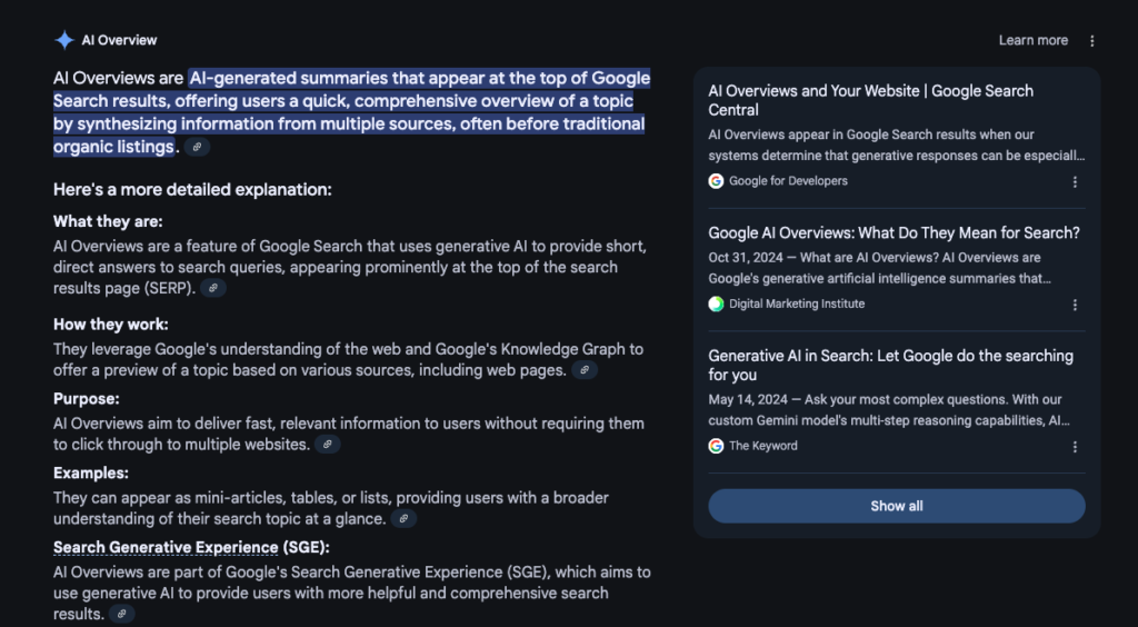 AI-powered search engines now give you detailed overviews right in the search results. Search engines blend information from different sources instead of just showing a list of links. These AI-generated summaries tell you business hours, services, prices, and what customers think—without clicking any website.