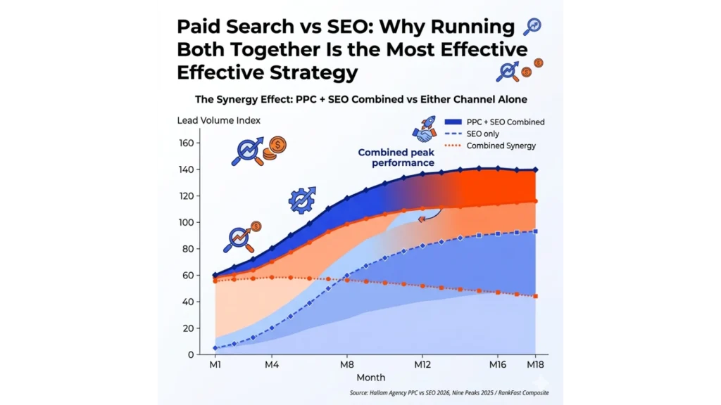 The synergy between paid and organic search is well-documented and operates across several reinforcing mechanisms.
