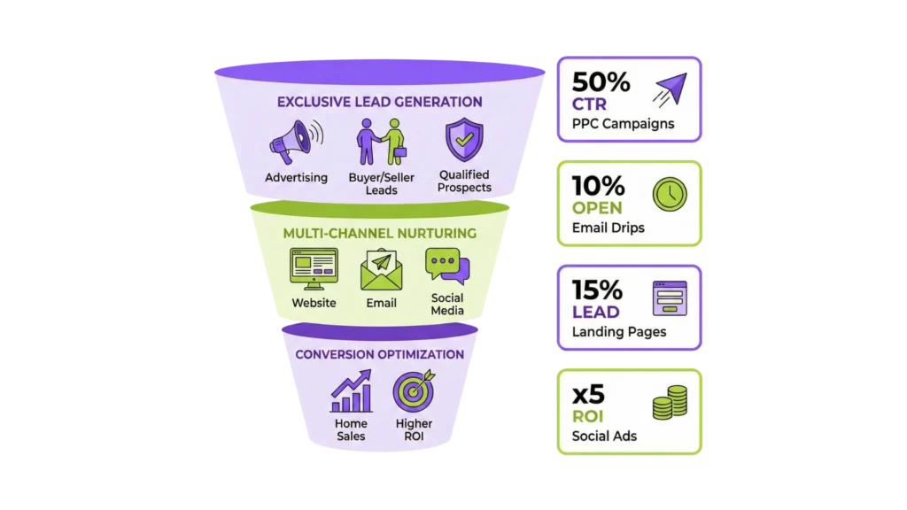 SEO doesn’t just make you visible—it connects your business with the right people at the perfect time. Your website becomes a round-the-clock lead generation system by optimizing for specific real estate seller SEO terms. This attracts qualified prospects who already want what you offer.