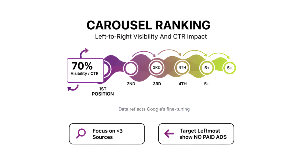 | Source Visibility | Based on vertical ranking | Left-to-right carousel placement affects CTR |