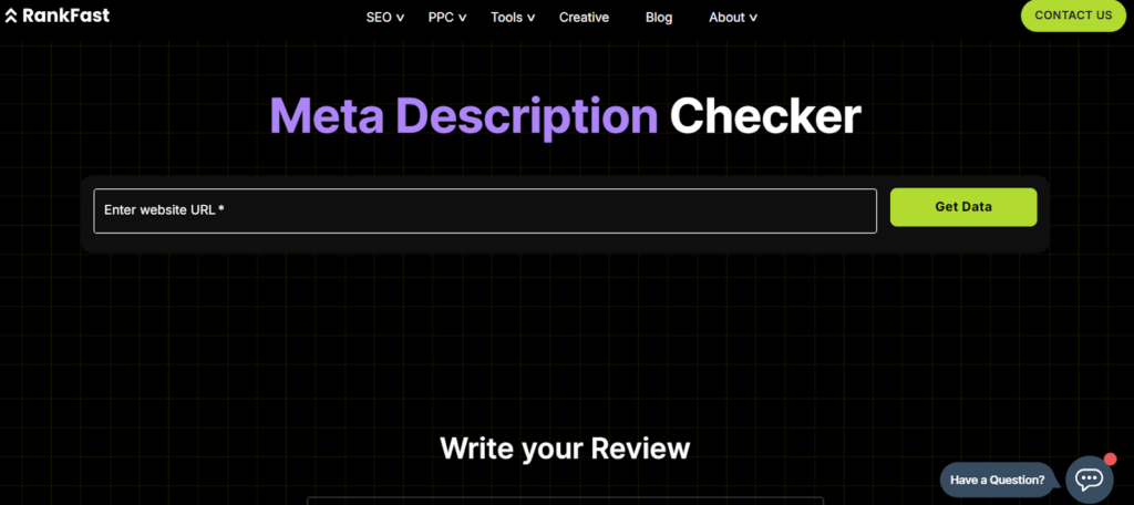 Rankfast’s AI meta description checker helps you create, review, and export better descriptions. You can track their success through click-through rates and engagement metrics. The process is simple: