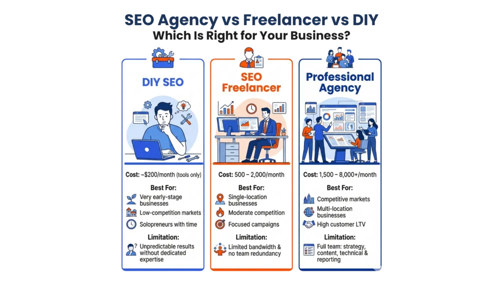 SEO Agency vs Freelancer vs DIY: Which Fits Your Business