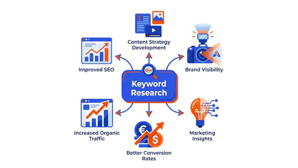Keyword research identifies the exact search terms your target customers use at every stage of their decision-making journey. Professional keyword research maps search intent across three layers: